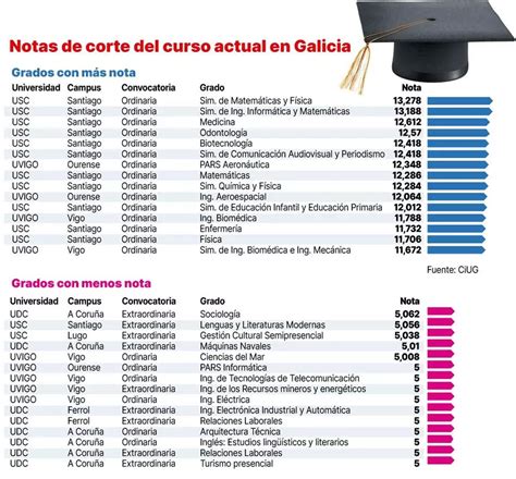 A continuación, se presentan las notas de corte más altas en las principales universidades de Galicia: