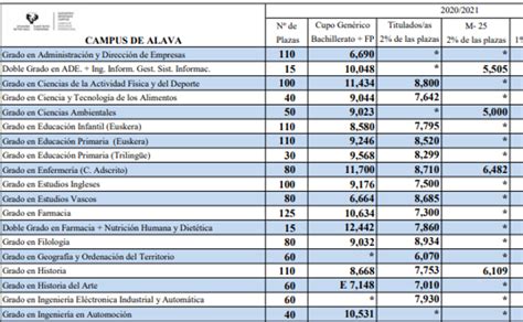 | Universidad | Titulación | Nota de Corte | Provincia |