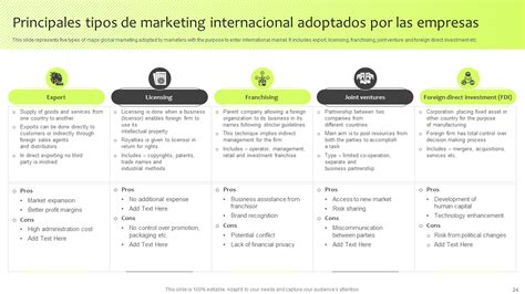 Usualmente, este tipo de estrategias contemplan la oferta y demanda del mercado extranjero, las cuales dependen de las interacciones que hay en el comercio (la exportación e importación de productos al país y los competidores locales, nacionales, multinacionales o globales). Estas actividades previas te permitirán conocer, segmentar y entender mejor a tus audiencias. Para tener éxito en esta etapa, asegúrate de elaborar preguntas lo suficientemente específicas y bien dirigidas a tus objetivos.