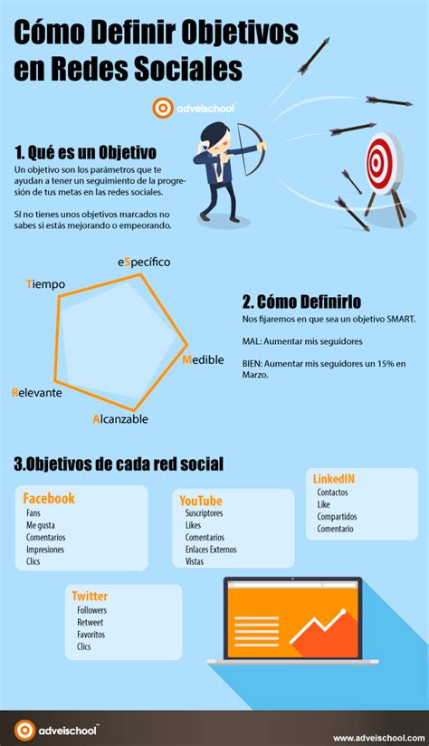 - La primera etapa para definir tus objetivos en redes sociales es saber desde donde estás partiendo. Para eso, analiza el estado de tus redes sociales actuales e identifica tu ritmo de crecimiento actual y los recursos que le estás asignando.