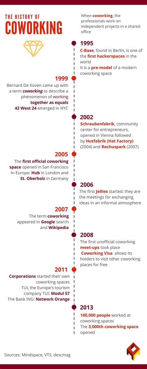 Los coworking ahora están en alza. En los últimos 10 años la idea del uso compartido de las oficinas ha desarrollado mucho en todas partes del mundo. Los principios de coworking recuerdan a los de "bottegas" de la época de Renacimiento - los talleres artísticos de Florencia del siglo XV, donde los maestros de gran experiencia se dedicaban a la formación de los jóvenes aprendices, donde se desarrollaban nuevos talentos y crecían nuevas técnicas y formas de arte, gracias a la competencia y colaboración entre diferentes artistas y científicos que trabajaban juntos.