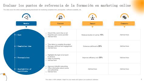 El especialista en marketing es un profesional altamente cualificado en el campo del marketing que se encarga de diseñar e implementar estrategias eficaces para promover productos y servicios. Para calibrar las campañas publicitarias y las iniciativas promocionales a fin de responder eficazmente a las tendencias actuales y a las exigencias del consumidor, este profesional se vale de un profundo análisis de los datos del mercado y de las percepciones de los consumidores, y trabaja constantemente para identificar nuevas oportunidades y áreas de mejora.