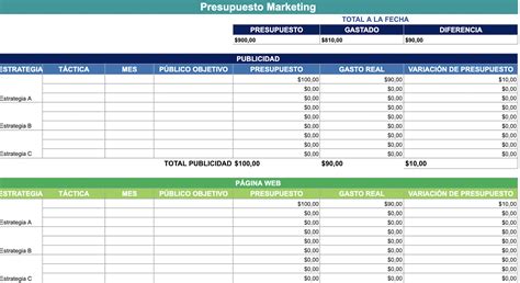 El marketing es un buen añadido al presupuesto anual, ya que en él se indica el público al que se orientan productos y servicios, el nivel de la competencia o las estrategias para conseguir ventas. Todo eso influye en el presupuesto de una forma u otra, y se concreta en esta sección de la plantilla: Plan de marketing y ventas, Mercado objetivo, Análisis DAFO y Competencia.