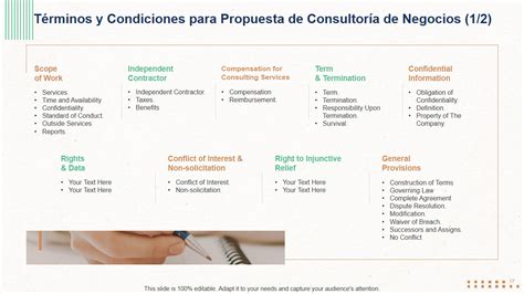 Una presentación de consultoría empresarial es una herramienta esencial para comunicar tus ideas, resolver problemas y ofrecer soluciones a tus clientes potenciales. A través de una plantilla bien estructurada, puedes proporcionar una perspectiva completa de cada parte de tu propuesta.