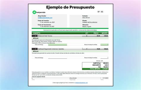 - Microsoft Excel: Ofrece funciones de cálculo prácticas para automatizar el coste total del presupuesto.