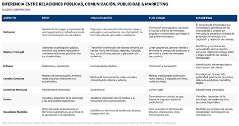 Para resumir las diferencias clave entre publicidad y relaciones públicas, la siguiente tabla puede ser útil: