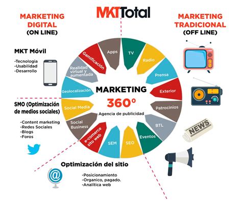 El marketing 360 grados va más allá, integrando también las interacciones offline, como eventos, relaciones públicas y publicidad en medios tradicionales.