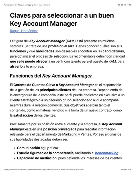 El KAM tiene una serie de responsabilidades que abarcan desde la gestión comercial hasta la estrategia de negocio. Algunas de sus funciones principales incluyen:
