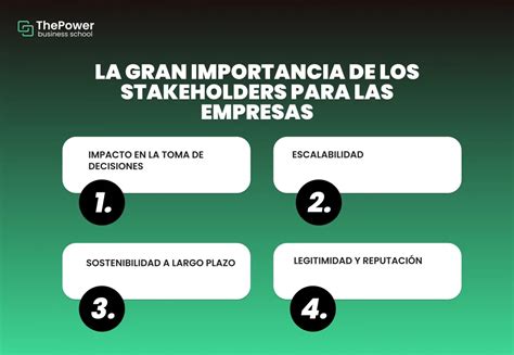 La importancia de los stakeholders radica en su capacidad para influir en la empresa y viceversa. Gestionar eficazmente estas relaciones puede tener un impacto positivo en la reputación de la empresa, su capacidad para innovar, su resiliencia ante riesgos y su sostenibilidad a largo plazo.