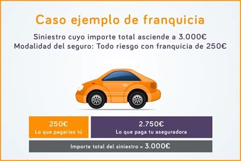Un usuario tiene contratado un seguro de coche con franquicia de 300€. Si tiene un accidente y el valor del siniestro es de 900€, el usuario paga los 300€ correspondientes a la franquicia, y la aseguradora cubre el resto, es decir, 600€.