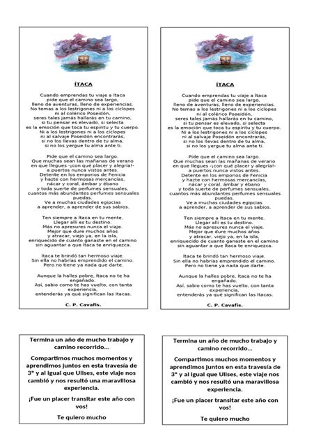 En ese poema de 1911, el magnífico poeta griego hace referencia al mítico viaje de la Odisea, donde se narra el viaje de Ulises a su patria, Ítaca, tras la guerra de Troya. Ítaca, en la cultura de Occidente, significa ‘llegada’, ‘logro’. El poema, sin embargo, pone el énfasis en el propio recorrido, y en un camino que debe estar abierto a todas las experiencias que constituyen la vida. Sólo al final repara en el propósito del viaje: “Ten siempre Ítaca en la memoria/ llegar allí es tu meta/ más no apresures el viaje (…) Ítaca te regaló un hermoso viaje/ sin ella el camino no hubieras emprendido”. En efecto, para mí la meta ha sido con frecuencia en la vida el pretexto para echar a andar.