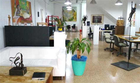 Alecs Navío concibió tres espacios diferenciados: un coworking para los teletrabajadores, una galería de arte que acoge exposiciones temporales y en el sótano un taller para artistas que trabajan en diferentes modalidades desde la pintura y la escultura hasta la fotografía y la joyería. Tres conceptos que pese a ser diferentes, su creador ha conseguido fusionar en armonía.