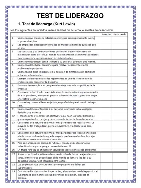 3. Test de Estilo de Liderazgo de Kurt Lewin