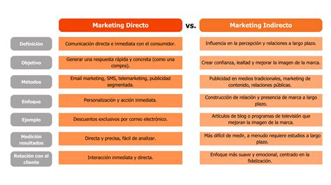 Para comprender mejor el marketing indirecto, es útil compararlo con su contraparte, el marketing directo. Mientras que el marketing directo se centra en establecer una comunicación personalizada e inmediata con el cliente, buscando una respuesta rápida y concreta, el marketing indirecto se enfoca en la construcción a largo plazo de la marca y la lealtad del cliente.