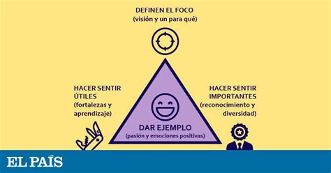 Son un ejemplo: En el corazón del triángulo está el actuar como referente desde las emociones positivas y la pasión. Influir en la vida de las personas es una responsabilidad que ha de enamorar. Si uno no lo disfruta, es difícil que sea buen jefe. Podrá ser un buen técnico o comercial, pero será complicado que se le reconozca como líder. Tampoco seguimos a personas que son destructivas o que se quejan por todo. Seguimos a personas que nos hacen sentir bien y que vemos que son coherentes con lo que dicen y hacen.